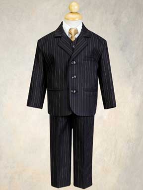 Home > 5 Piece Black with Gold Pin-Striped Suit with Gold Tie - 6m to Size 14