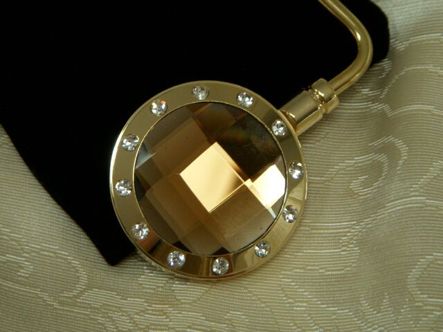 Elegantly designed with amber crystal in gold tone with glittering trim.