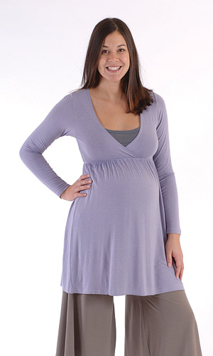 This organic maternity /women clothing is a Top with empire waist and crossover front. A great gown for maternity wear for cozy sleep or with jeans!