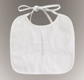 This Baby boy's christening bib is made from delicate cotton and embroidered with a white cross.