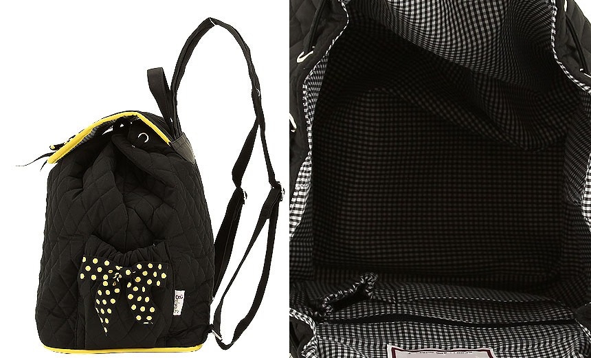 QUILTED Black with Gold Trim DRAWSTRING BACKPACK