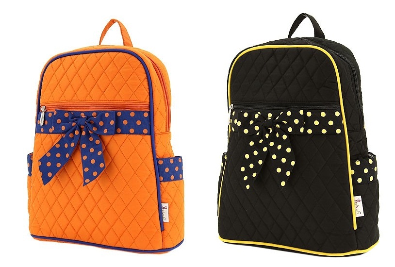 Special Order Item, allow 6-7 business days for shipping, then 2-3 business days to customer. Monogrammed bags are not returnable. We have three color options for this backpack, Black with gold trimming, Maroon with black and Orange with royal blue