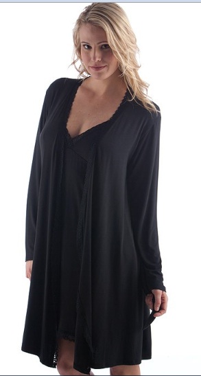 our Flirty Nightie. Treat yourself to a set, or treat someone else – it makes a fabulous shower or birthday gift! Long sleeves, belted wrap front, knee length.