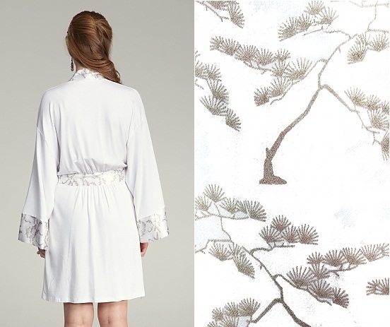 It is a stylish, functional and fun robe made with incredibly soft bamboo jersey paired with patterned silk for fun pops of color