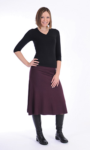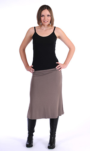 This bamboo women clothing is a stylish tea length skirt with wide waistband with ruching at side seam as shown in the pictures. The fabric is a heavier weight fabric