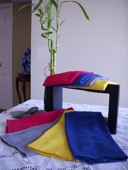 They come in four decorative colors -- red, blue, yellow and khaki grey. Colors that will compliment your kitchen decor and towels that offer absorbency.