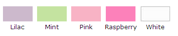 Available in Mint, Pink, Lilac, and White. Click on the color icon to look at the larger color palate.