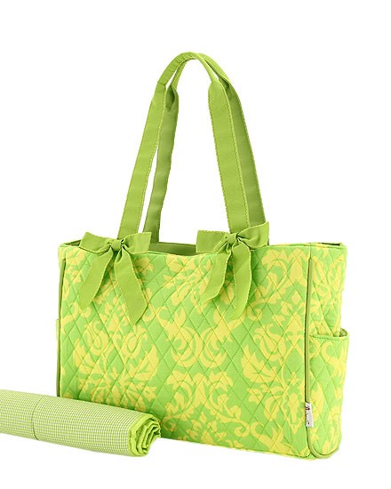 Oh, no! Your baby is in need of a diaper change! This two piece Diaper Bag would be very convenient! There is a baby changing pad that is included. The set is highly practical and trendy. The bag is monogrammable meaning you can have letters or initials stitched in!