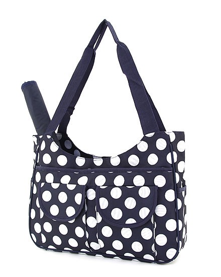 WHITE POLKA DOTS ON BLACK PRINT DIAPER TOTE BAG