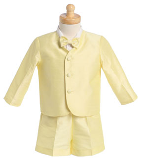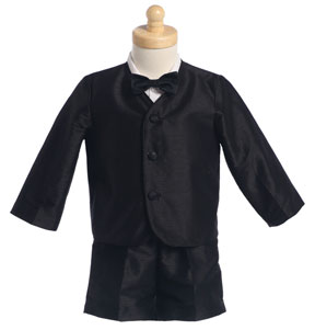 Poly silk eton jacket and shorts set includes shirt and bowtie.