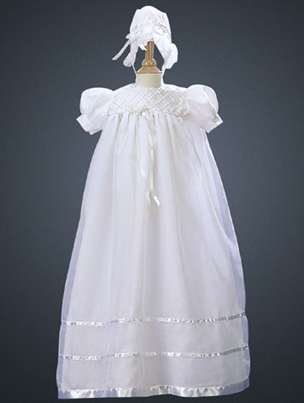This Lovely embroidered organza gown with satin trim is the perfect gown for christening/baptism.