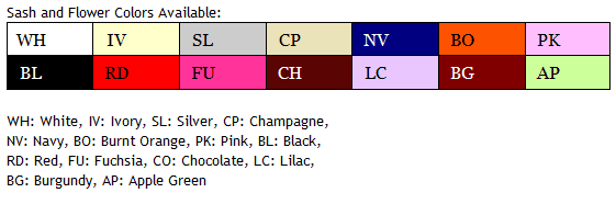Extra Sash and Flowers for BL101 Dresses. Change colors and create a new look for your customizable dress! Make one dress work for several occasions!