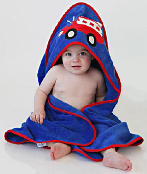 Super soft 100% cotton hooded towels with matching washcloth. A great practical gift. Oh so cute and fluffy to wrap your child in! Size: 30" x 30"