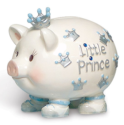 The Mud Pie Prince Piggy Bank is an adorable piggy bank from the Mud Pie prince line.