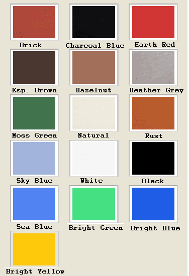 Size chart link for sizes reference and click on the color icon to check out the color palate. The color representations are only approximate. We are missing bright green and bright yellow. We will add them to our color chips soon!