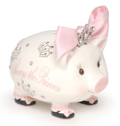 is an adorable piggy bank from the Mud Pie princess line --keepsake piggy banks.