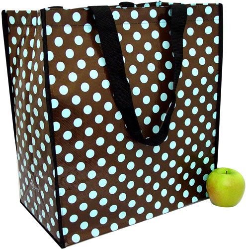 Reusable Eco-Green Brown Market Tote with Teal Polka Dots