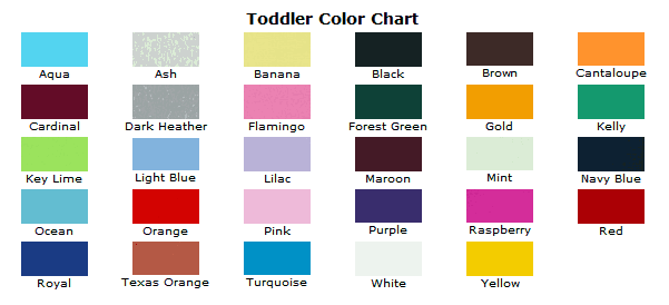 We have many color to choose from. Click on the color icon and you will have a larger color palate to look at. Please note Colors shown are approximations, because of variations in the way monitors show color swatches may not match actual garment colors.