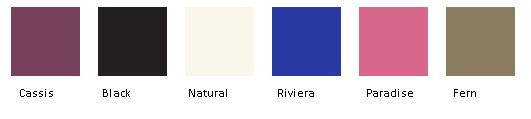 We have six colors, Black Cassis Mushroom Natural Smoke Wisteria.