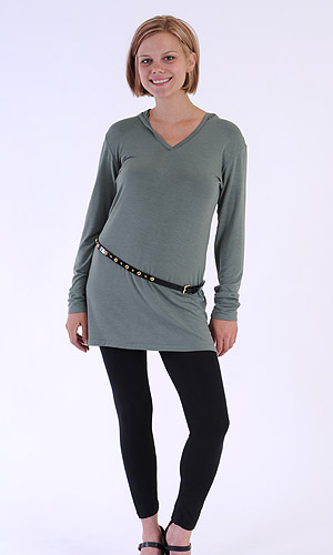 This Hooded tunic is a must have with V-neck, side slits, full length sleeves & hood.