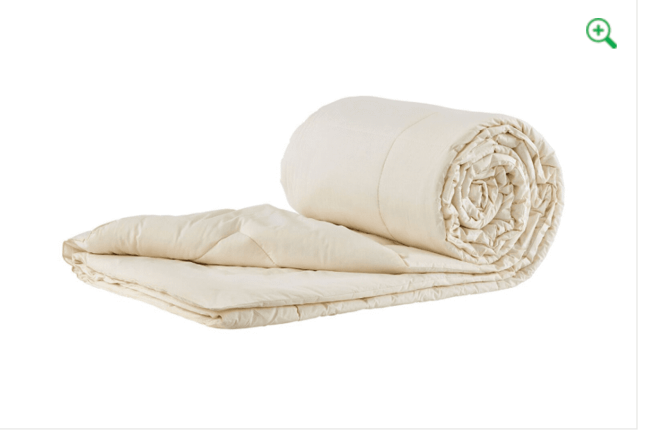 Cover: 100% natural cotton sateen, 300TC, ivory shade. Fill: 100% washable wool.